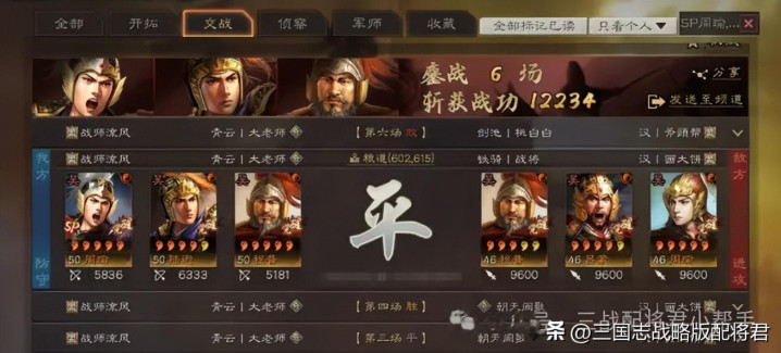 世界无双高光战绩已得胜打出,各式低战损秒高红满红队列!