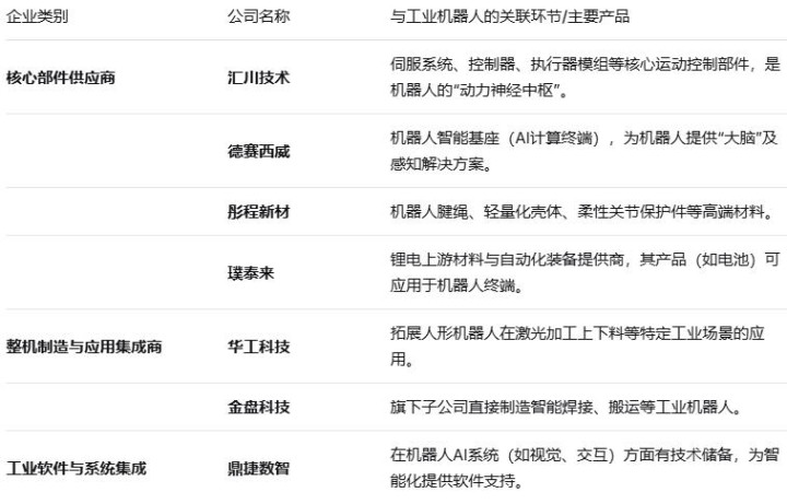 而1月的这份拟赴港IPO名单里,从核心运动部件(汇川)、智能计算单元(德赛西威),到特种材料(彤程新材)、整机制造(金盘科技),构成了一个层次清晰、覆盖广泛的工业机器人产业链条。
