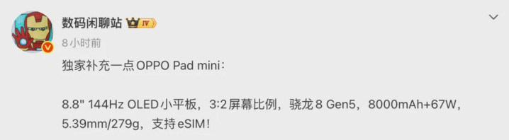 这不仅是OPPO首款搭载骁龙8 Gen5芯片的小尺寸平板,更是成功对标iPad mini。