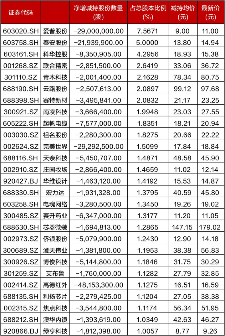 表4:2026年1月公司管理层完成减持股份行为列表(减持占比不低于1.00%)(左右滑动查看)