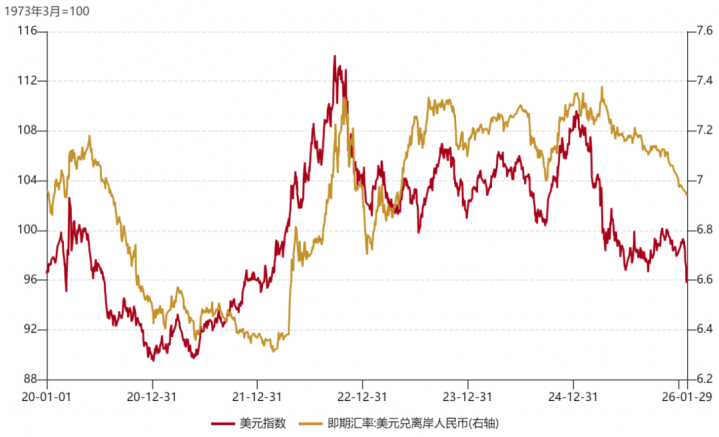 2026年1月19日,美联储主席鲍威尔遭刑事调查的消息席卷全球金融市场。这场以美联储总部翻修工程超支为由的调查,被鲍威尔直指是政府施压降息的借口,其影响已远超个人争议,直指美联储制度基石与全球金融稳定。消息一经披露,美元指数短线跳水,现货黄金强势突破4600美元关口,美股期货显著走低,全球大类资产掀起避险浪潮。为了中期选举和制造业回流目标,特朗普大概率会施压美联储降息,美元短期、长期均面临下行压力。人民币则依托基本面有中长期走强支撑,美元信用变化也是贵金属上涨的重要背景。