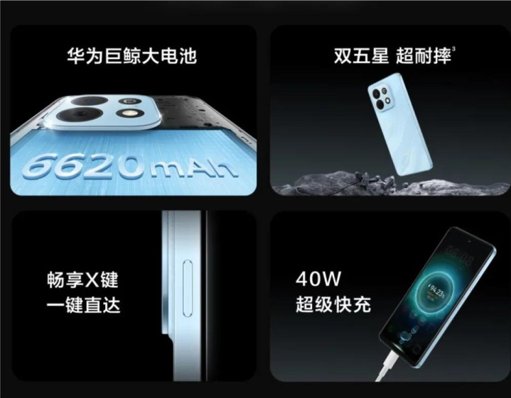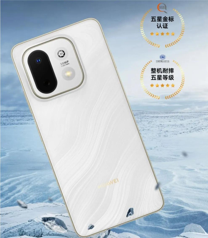 外围成立:侧边指纹、双卡双通、蓝牙6.0、WiFi7、星闪、IP64防尘防水等,出厂搭载鸿蒙6.0系统。