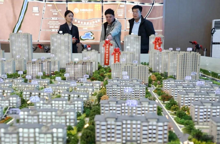 △消费者正在一家预售楼盘选购楼房。(资料图,图片由CNSPHOTO提供)