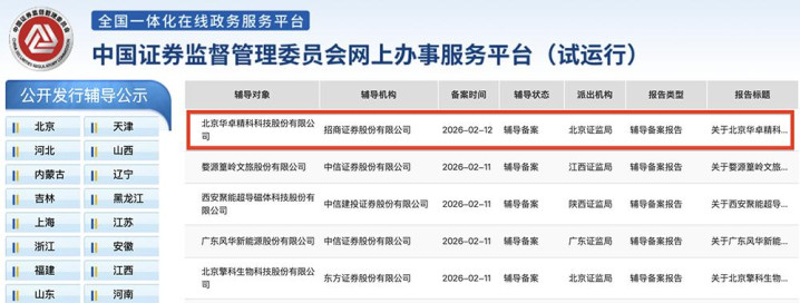 芯东西2月13日报谈,2月12日,证监会官网知道,北京半导体开辟企业华卓精科在北京证监局办理上市指导备案登记,开动A股IPO程度,指导机构是招商证券。