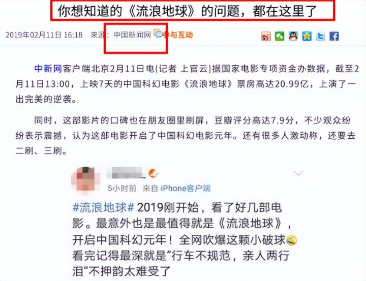 在其年后复工时,某社媒的首个动态竟亦然带着《流浪地球》剧组包场扶植的宣传。