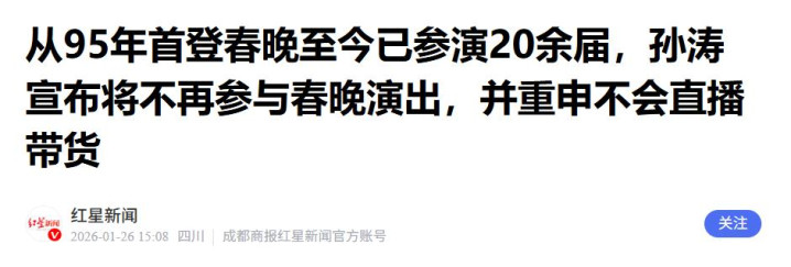1月26日,孙涛发了一则视频宣布告别春晚的舞台。