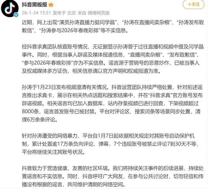 后来抖音官方也出面证实,不仅下架了谣言视频,封禁了首发账号。