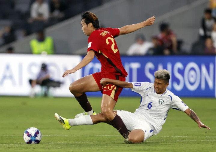 第30分钟,中国队获取角球契机,邵子钦在禁区内被对方后卫达达博耶娃拽倒,裁判判罚点球。邵子钦躬行操刀射中,为中国队首开记录。