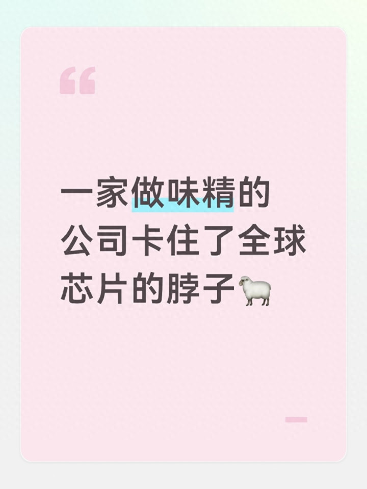可很少有东谈主知谈:在咱们看不见的方位,有一样东西比光刻机更“卡脖子”,并且它的泉源,果然是家家户户厨房里齐有的——味精。