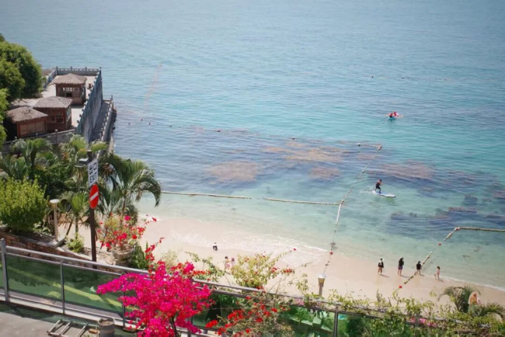 靠浪骑游艇会那边是桔钓沙莱华度假酒店的私东说念主沙滩,住店的宾客本事进。人人沙滩在另一头,免费通达,东说念主也多些。但其实人人区域的沙质和水质也不差,够玩了。