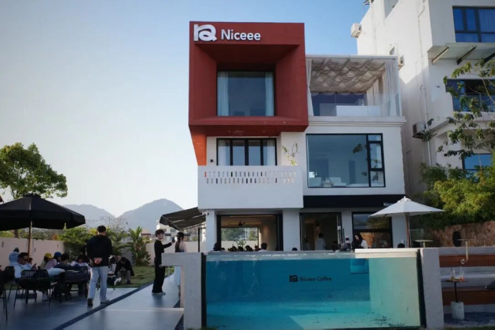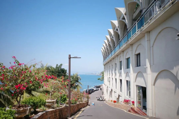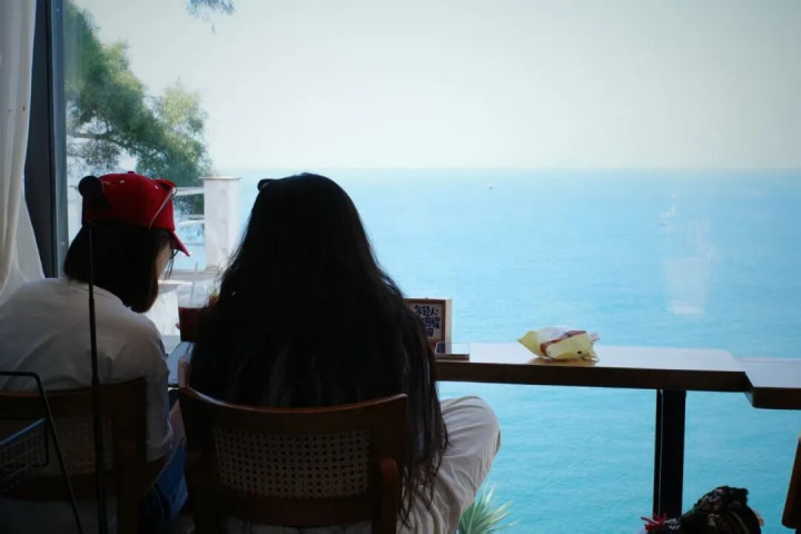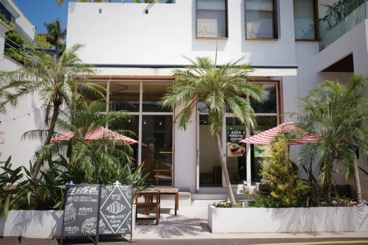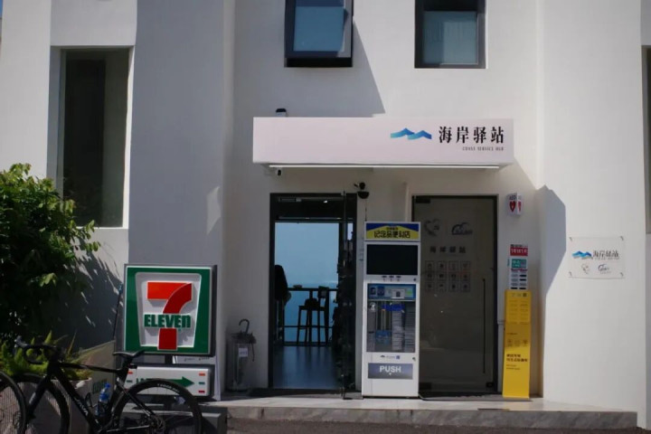 开在峭壁边上,面朝大海。纯白色的独栋小楼,橙绿色的牌号反而不显眼,海岸驿站四个字的出现,偶像剧氛围遽然拉满。走进去之后,靠海那面如故落地窗,无敌海景平直怼到目下!