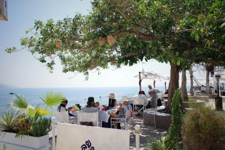 沿着海岸线往前走,就能遭受咖啡店/餐厅/小酒吧之类的。不外可能是白昼or淡季的原因,有一部分商家还没开门,嗅觉晚上会更淆乱一些。
