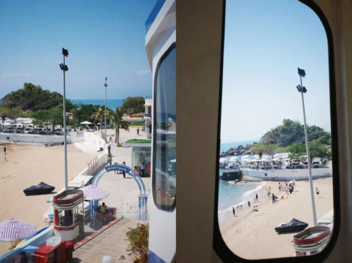 但真话讲,拍照是面子的!坐上去之后,目下是水光潋滟的海面,用火车上的窗户作念配景,真有点电影既视感。
