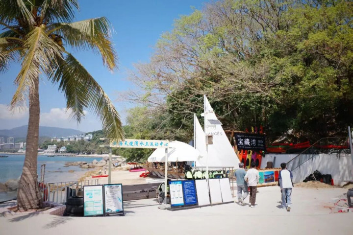 水上畅通是这边的特点。桨板、皮划艇、风帆、摩托艇……沙滩边上就能租,有造就带着,生手也能玩。价钱不算低廉,但比大小梅沙那些景区要实惠点。