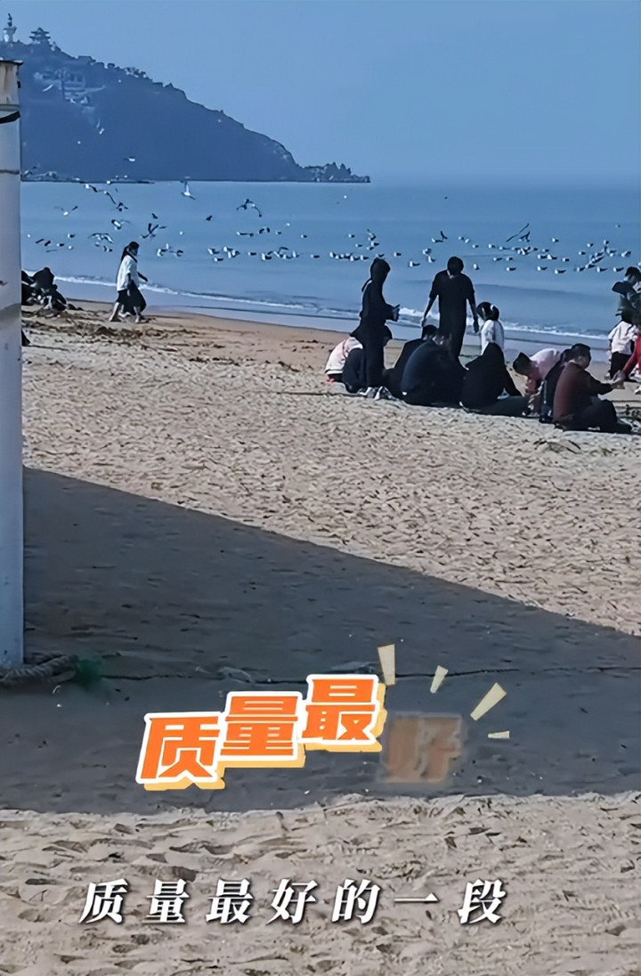 紧接着他把镜头一溜只见目前的是一大片沙滩和成群的海鸥,