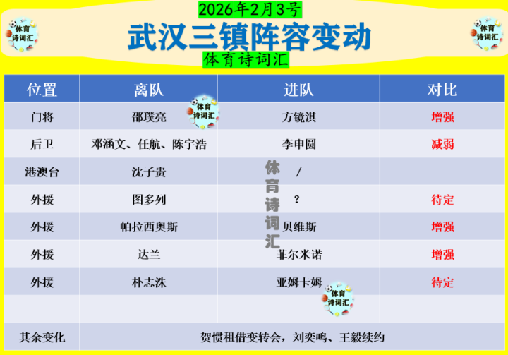 幸运5app 武汉三镇新、老阵容对比: 门将增强、后卫减弱, 外援大提升